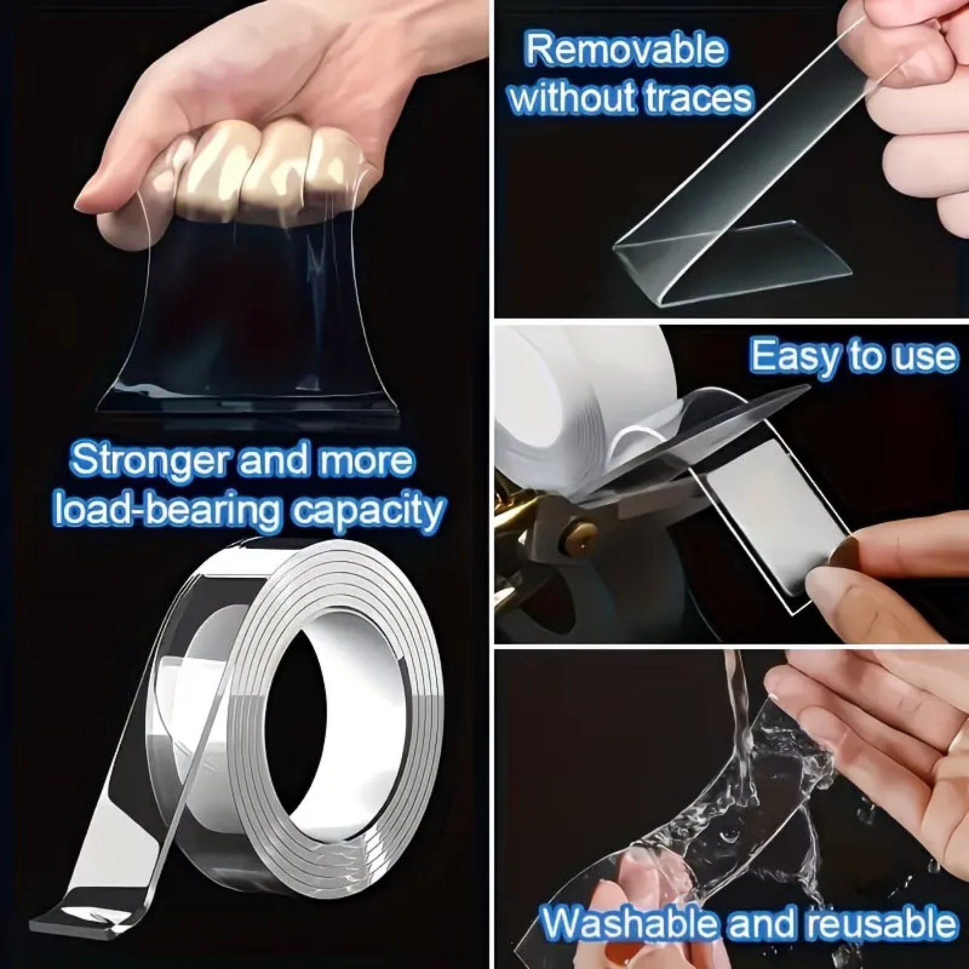 Nano Double Sided Tape (3 Meter) – Strong Transparent Reusable Adhesive Tape for Home & Office